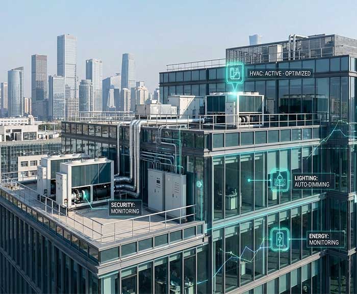 • Our BMS solutions enable efficient monitoring, control, and optimization of building systems, enhancing energy efficiency and operational performance.